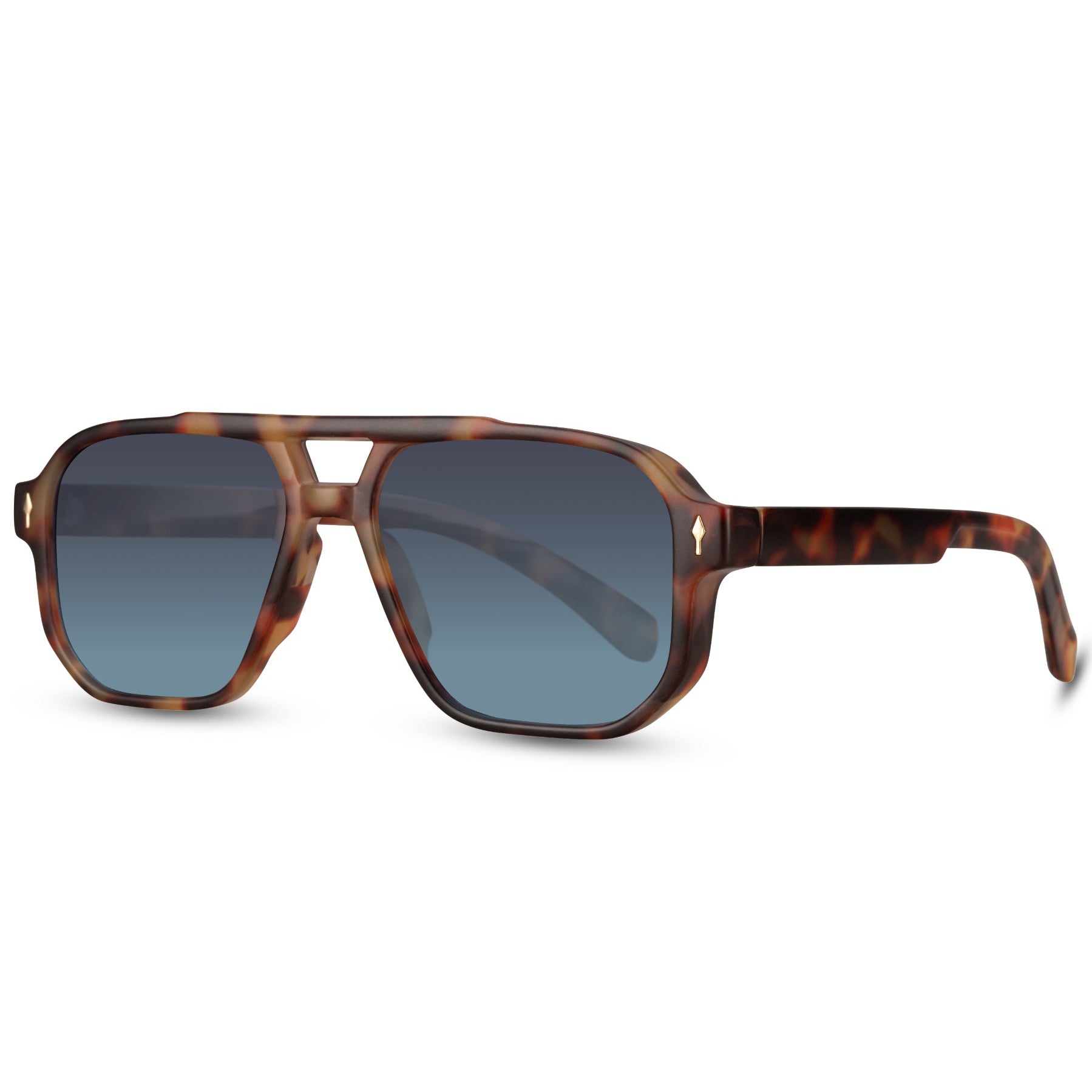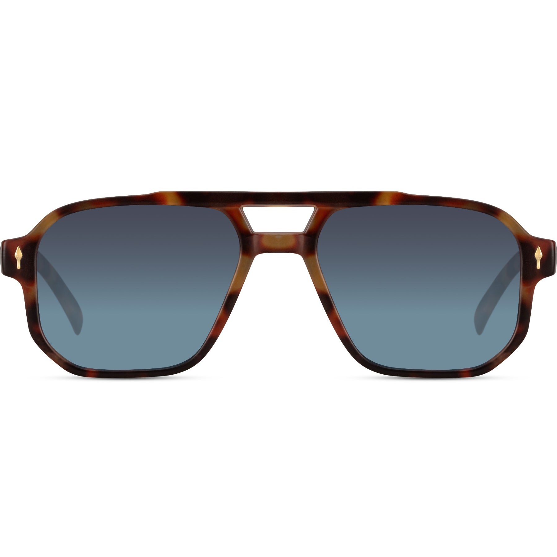 La montatura tartarugata con doppio ponte dona carattere e personalità, mentre le lenti blu sfumate completano il design con un tocco elegante e attuale. Un modello pensato per chi cerca occhiali da sole di tendenza, dal look forte e riconoscibile.